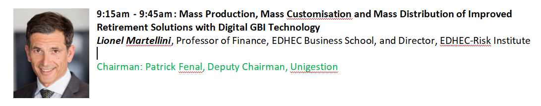 其中EDHEC商学院金融学教授兼EDHEC-风险研究所所长Lionel Martellini做《大规模生产、大规模定制和大规模分发采用数字目标导向投资技术的改进解决方案》演讲;