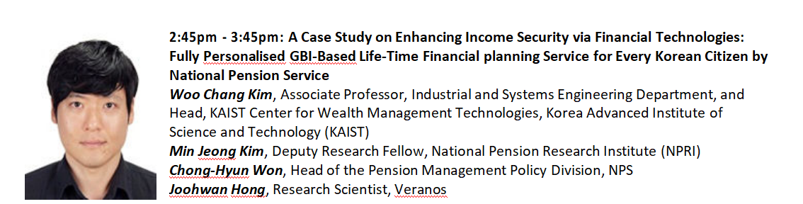 韩国高级科学技术研究所工业和系统工程系副教授兼KAIST财富管理技术中心主任Woo Chang Kim《通过金融技术提高收入保障的案例研究:国家养老金服务机构为每位韩国公民提供完全个性化的基于目标导向投资的终身理财服务》。